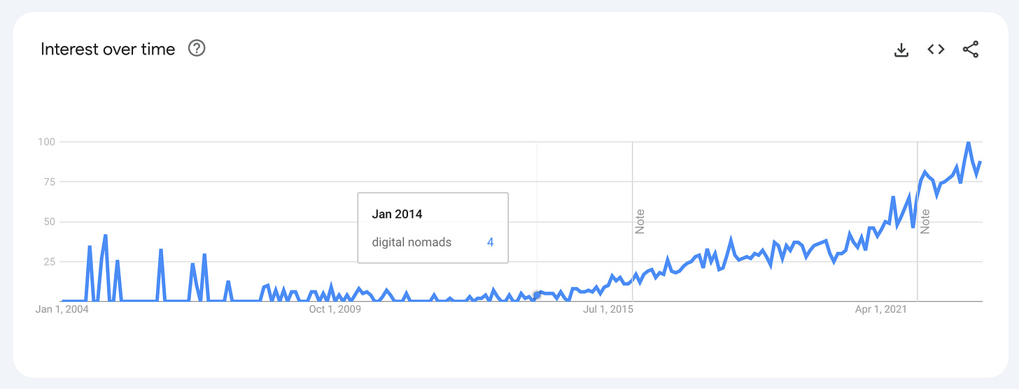 The success of Nomad List is strongly tied to the inflection point of the rise of traveling remote workers due to the evolution of technology.